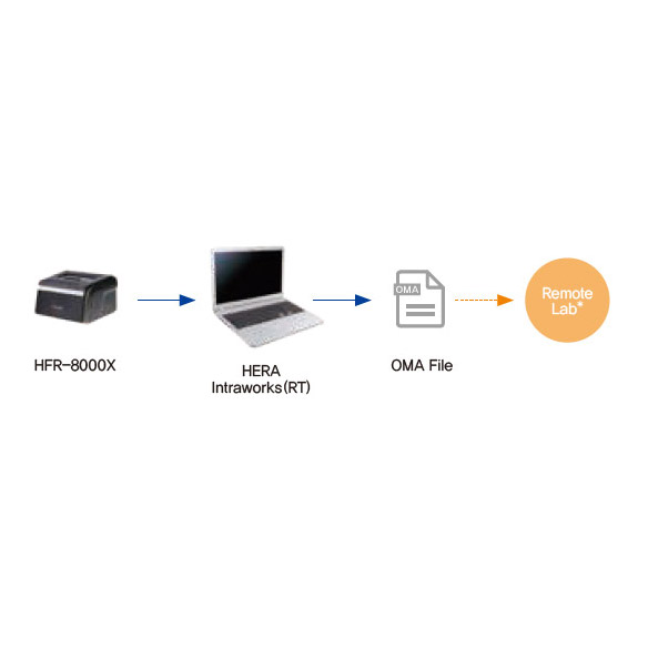 * Remote Lab receives job data via a Lab Management Software, or can make an economic solution with the combination of email and HERA Intraworks(STD).