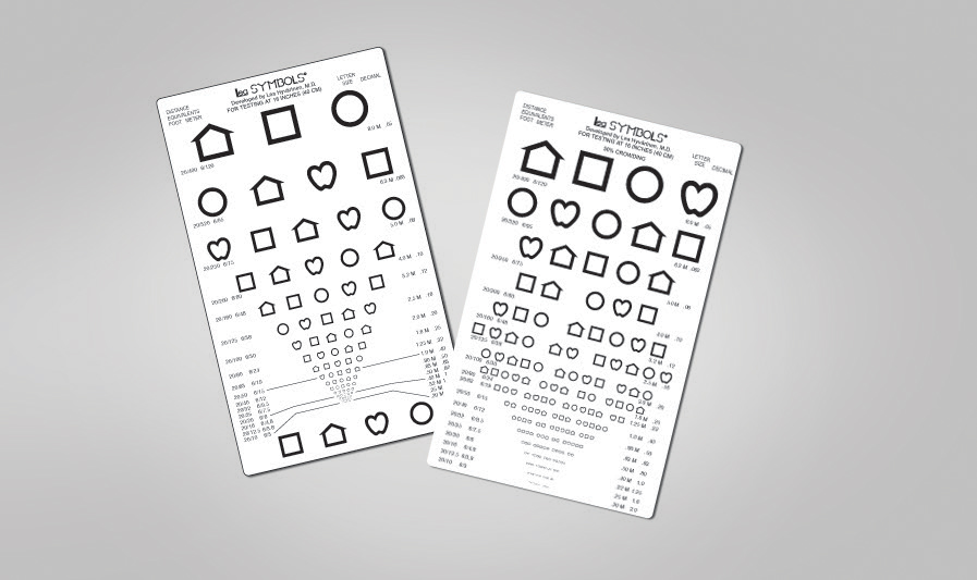 sizes from 20/400 to 20/10 (6/120 to 6/3)