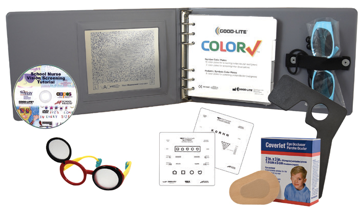 The AAPOS Supplemental Vision Screening Kit includes Black Handheld Flip Paddle Occluder, Flip Up Occluder Glasses, 16 Plate Color Vision Test, Random Dot Butterfly stereopsis test, Instructions and DVD with additional information. . . . . . . . . . . . . . . . . . . . . . . . . . . . . . . . 130