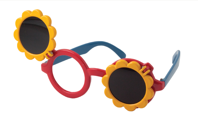 These fun sturdy occluding glasses have flip-up sunflowers to permit occlusion of each eye. Supports 55 mm to 65 mm PD and recommended for children 3 years to 5