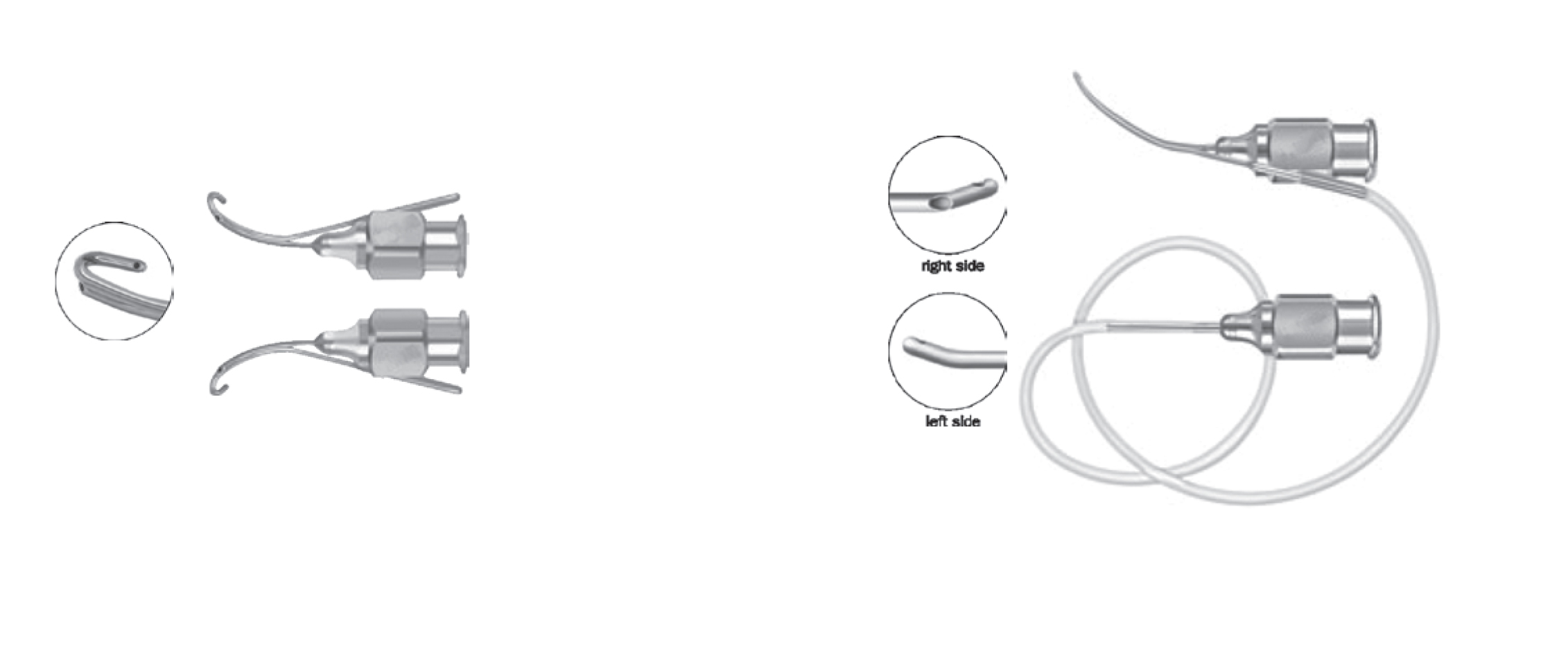 23 gauge, 0.3mm port elongated and gently curved with 15° angled tip.