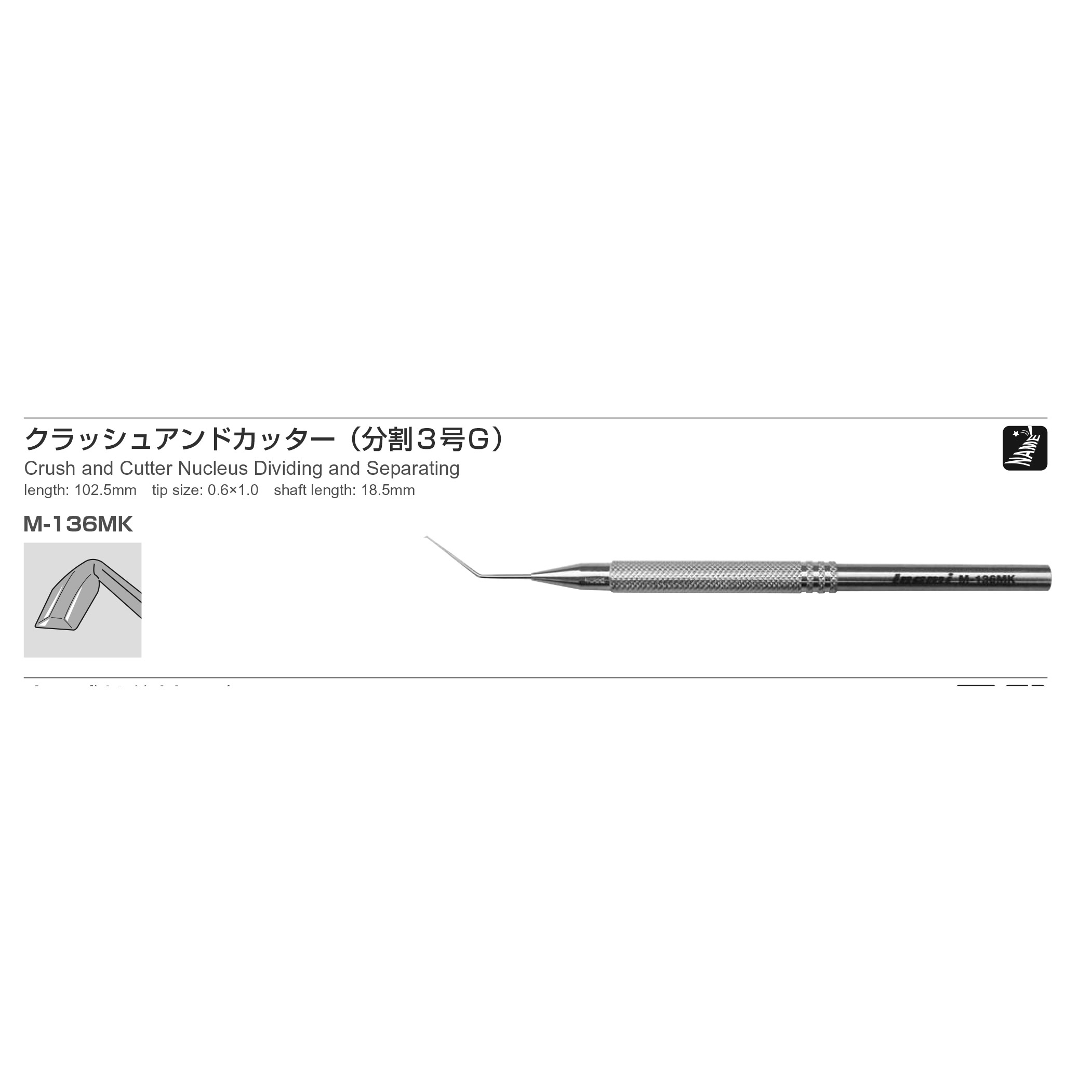 length: 102.5mm tip size: 0.6×1.0 shaft length: 18.5mm