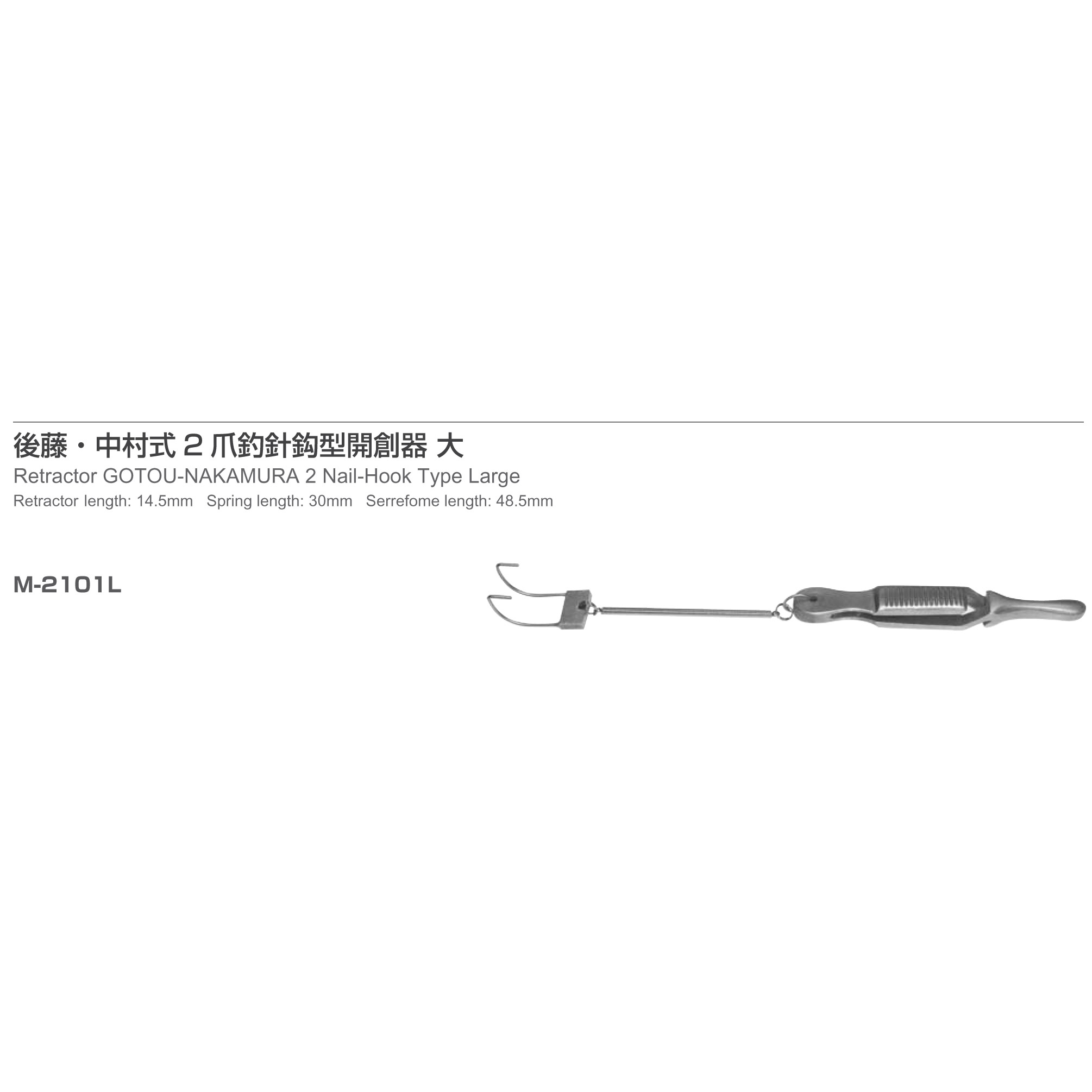 Retractor GOTOU-NAKAMURA 2 Nail-Hook Type Large Retractor length: 14.5mm Spring