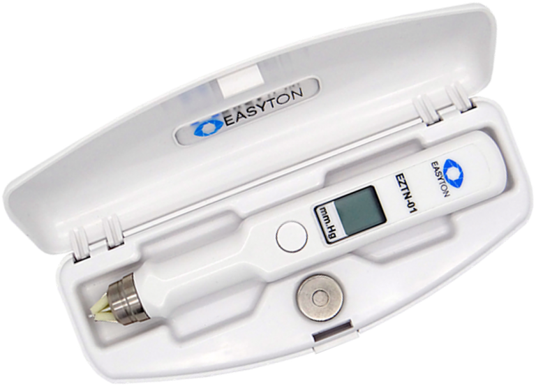 Easyton provides the IOP measurement without touching the cornea or having a direct eye contact. The disinfected tip of the measuring rod touches the patient's eyelid, not the cornea