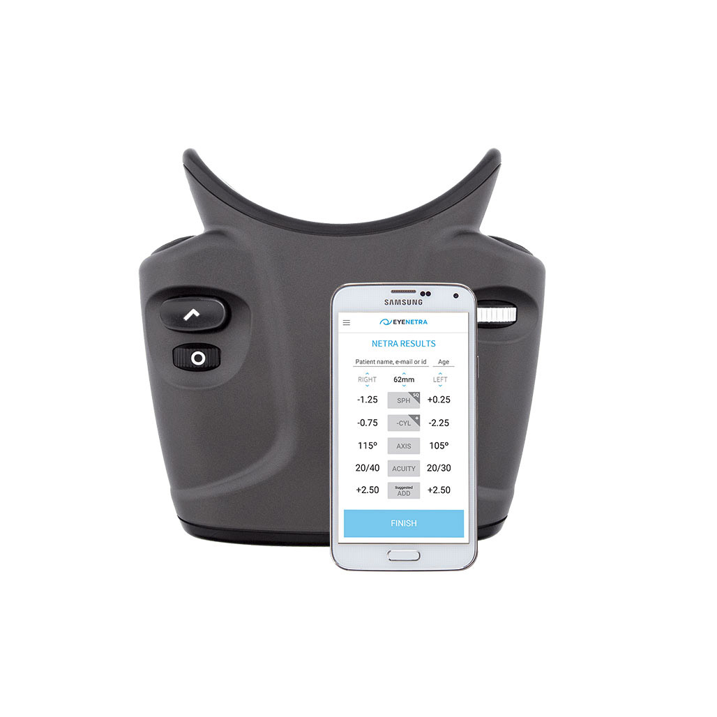For mobile eye diagnostics or vision screenings, the handheld NETRA auto-refractor measures sphere, cylinder, axis and pupillary distance through a series of game-like interactions in a virtual-reality environment.