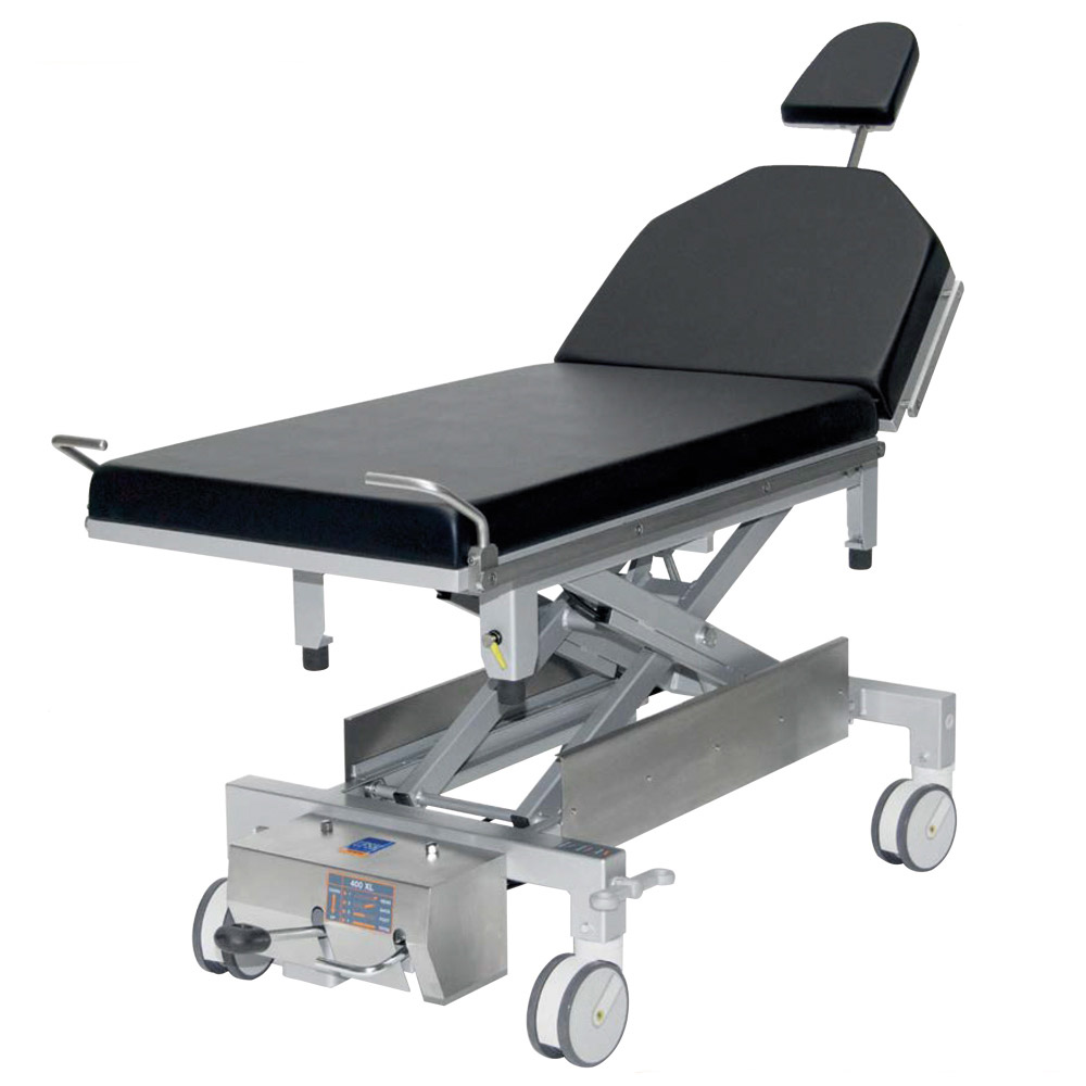 The 400 XL treatment table can be rotated by 360 degrees to also allow lateral movements. Our entry-level model is based on a rugged and easy-to-use technology. In contrast to our electromechanical models, its function is independent of batteries. This keeps procurement costs low on the one hand and ensures a long service life on the other hand.