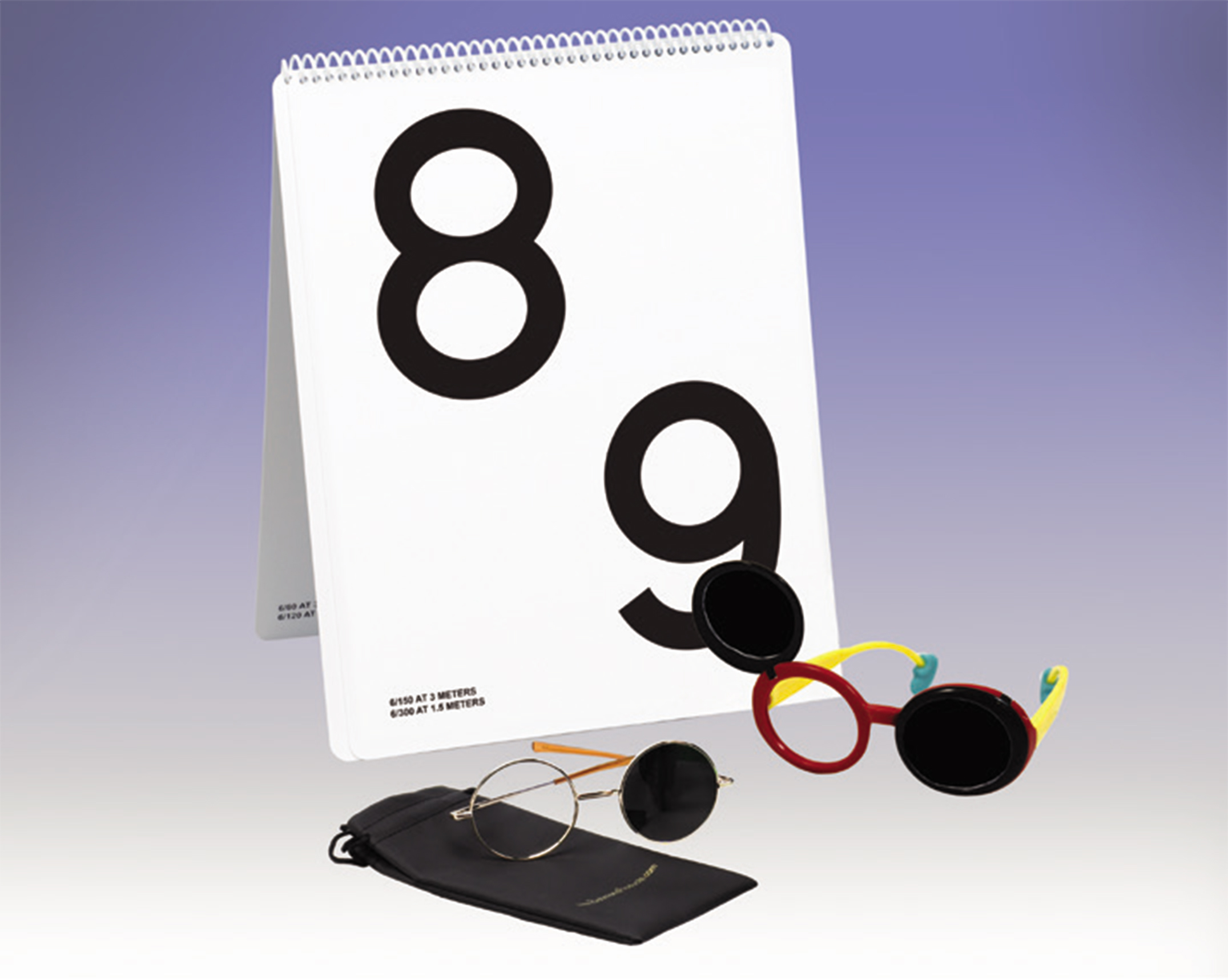 LEA NUMBERS® low vision test is designed for examining children and adults with severe visual impairments. This complete book includes testing for 10' (3 meters), 5' (1.5 meters) and 16" (40 cm) near vision. Distance testing line sizes range from 20/1600 to 20/16 equivalent, 0.25 to 1.25. Near vision testing line sizes range from 20/800 to 20/16 equivalent, 0.25 to 1.25.