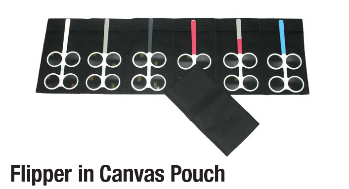 Set of 6 Flippers in Canvas Pouch with elastic closure. Black. Includes 6 Flippers: