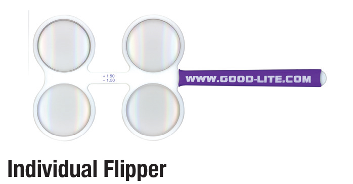 Individual flippers available in various lens configurations. Durable with a soft handle.