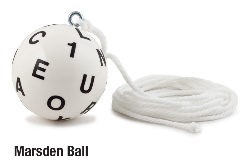 A basic vision therapy tool no vision therapy practice should be without. A 3" hollow ball made of durable vinyl with applied black letters and numbers on a 10' cord.