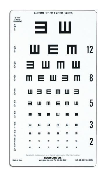 Linear-spaced lines; line sizes range from 20/160 to 20/16 (6/48 to 6/4.8) equivalent, 0.12 to 1.25.
