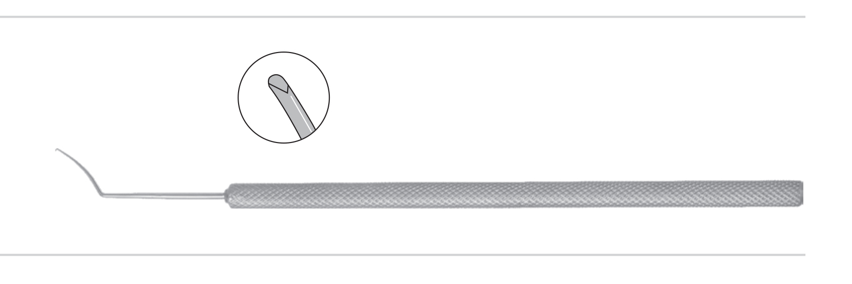 LASIK Spatula rounded anterior and flat posterior surface with beveled tip for lifting and dissecting the corneal flap.