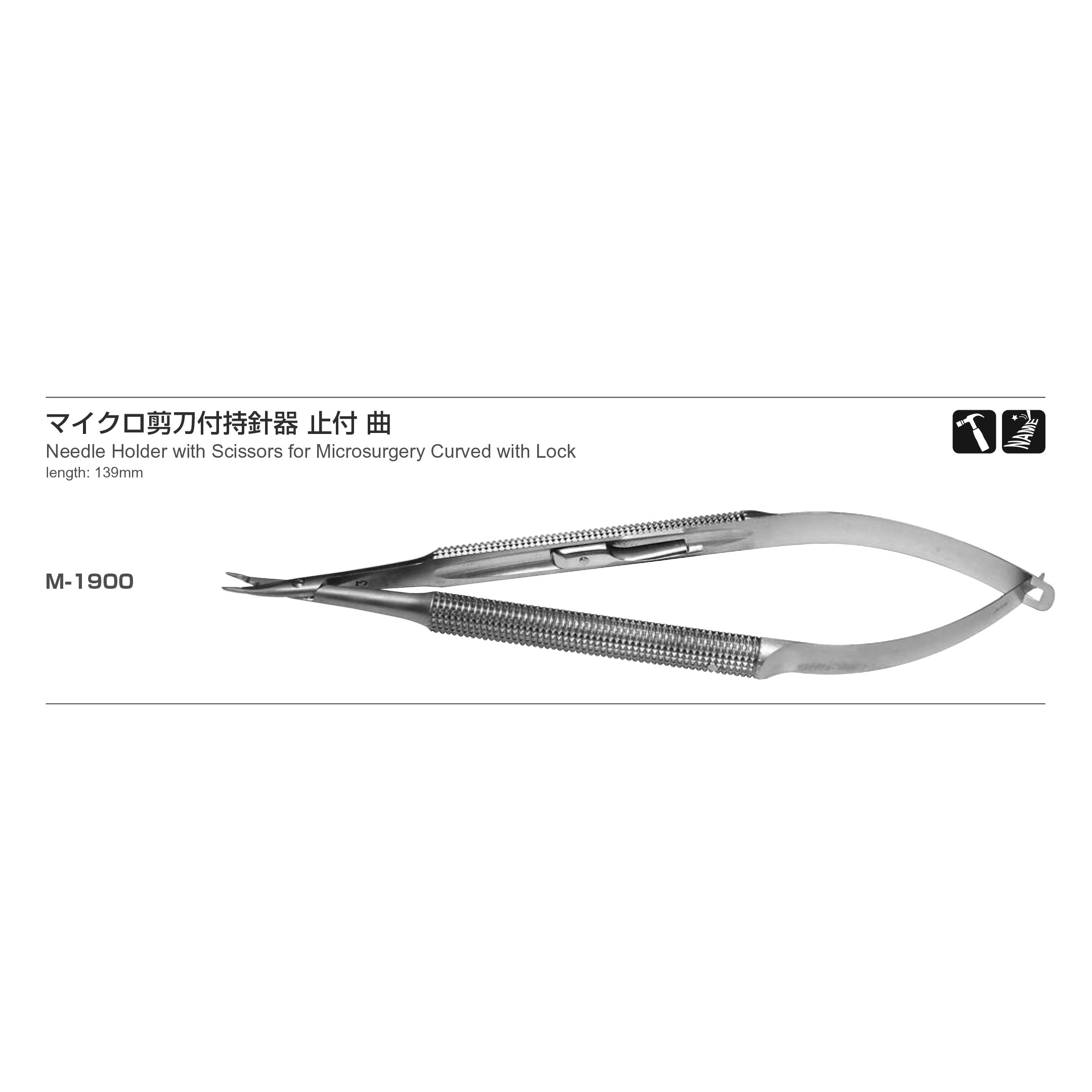 Needle Holder with Scissors for Microsurgery Curved with Lock